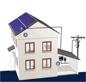En cambio, en los sistemas de conexión a red ese posible exceso de producción se vierte a la red eléctrica para que sea aprovechado por otros consumidores de electricidad. Cuando no se genera suficiente electricidad en el momento del consumo, esta se obtiene de la red eléctrica tradicional.